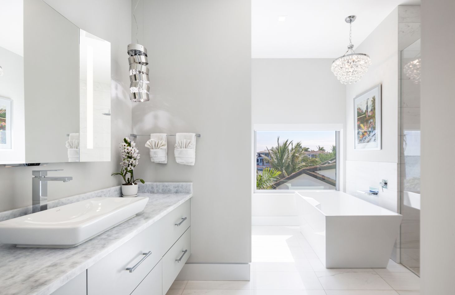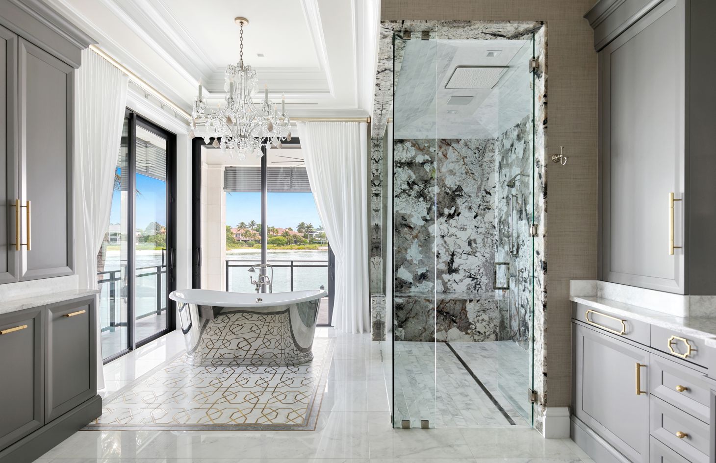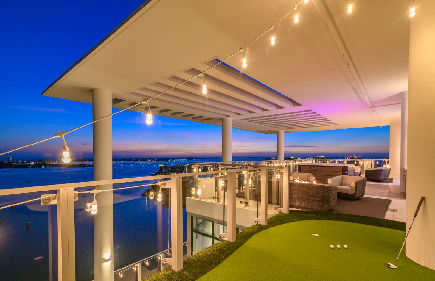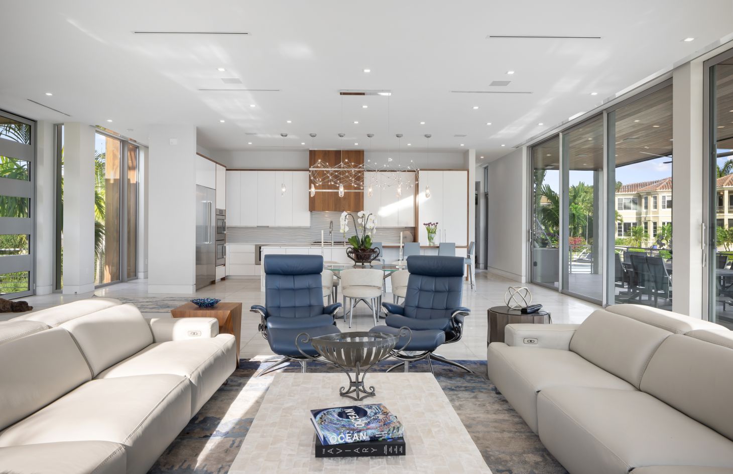 The design philosophy of the penthouse is centered around capturing the essence of its breathtaking surroundings. Dramatic walls of glass frame the living spaces, allowing natural light to flood in and offering uninterrupted vistas of the endless bay views that lie beyond. Adding an extra layer of sophistication and practicality, Lutron motorized shades have been thoughtfully installed throughout the penthouse. With just a touch, you can adjust the shades to create the perfect ambiance, whether you desire a softly lit sanctuary or an open, sun-soaked retreat.